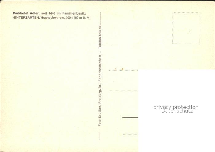 72534165 Hinterzarten Breisgau-Hochschwarzwald BW Parkhotel Adler im Schwarzwald Restaurant postalisch nicht gelaufen Erhaltung siehe scans [FriedD77 kt118box] KatCode: 11110008315052