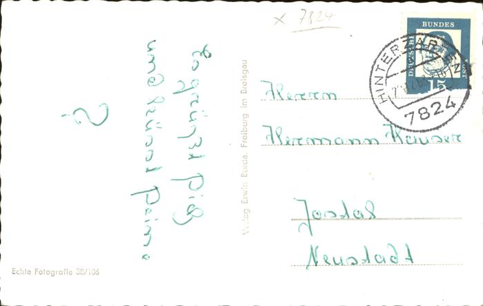 41391607 Hinterzarten Breisgau-Hochschwarzwald BW Parkhotel Adler mit Kirche postalisch gelaufen Alte Ansichtskarte Postkarte alte Postkarte hz_W Katcode 11110008315052