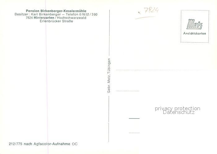 73041760 Hinterzarten Breisgau-Hochschwarzwald BW Pension Birkenberger Kesslermuehle postalisch nicht gelaufen Erhaltung siehe scans [WerneD78] KatCode: 11110008315052