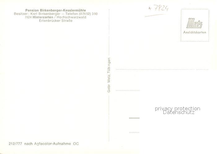 73040911 Hinterzarten Breisgau-Hochschwarzwald BW Pension Birkenberger Kesslermuehle im Schwarzwald postalisch nicht gelaufen Erhaltung siehe scans [FriedD77] KatCode: 11110008315052