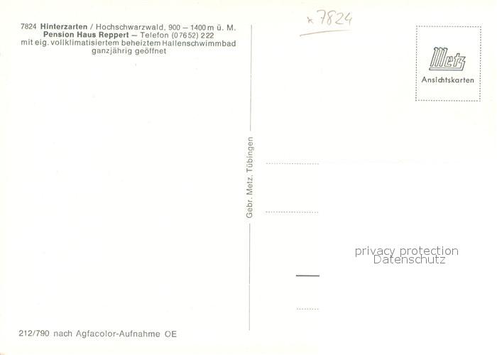 73027488 Hinterzarten Breisgau-Hochschwarzwald BW Pension Haus Reppert Schwimmbad postalisch nicht gelaufen Erhaltung siehe scans [KathaD81] KatCode: 11110008315052