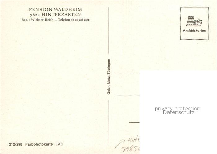 73792986 Hinterzarten Breisgau-Hochschwarzwald BW Pension Waldheim Aussenansicht m. Garten postalisch nicht gelaufen Erhaltung siehe scans [LiesaD40] Lies Katcode 11110008315052
