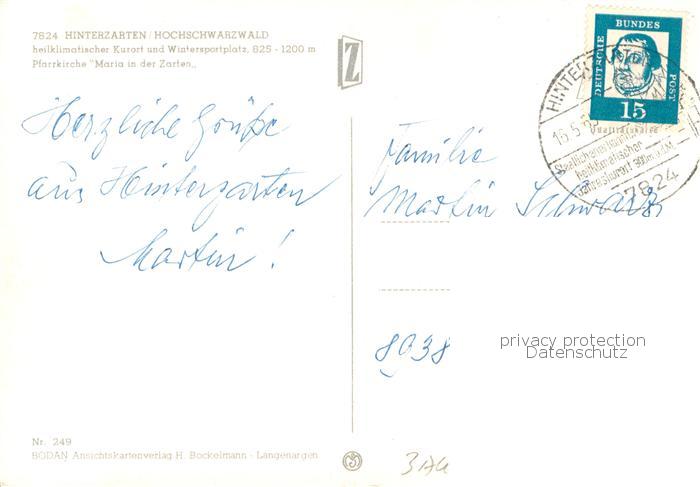 73778978 Hinterzarten Breisgau-Hochschwarzwald BW Pfarrkirche Maria in der Zarten postalisch gelaufen Erhaltung siehe scans [WerneD78] alte Postkarte Wern Katcode 11110008315052