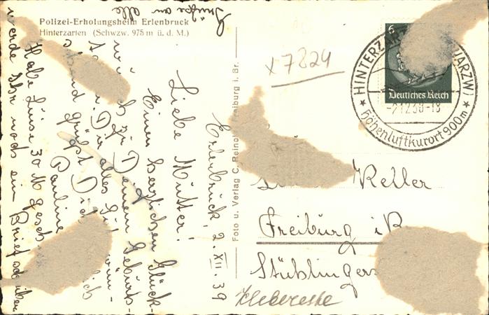41391592 Hinterzarten Breisgau-Hochschwarzwald BW Polizei Erholungsheim Erlenbruck postalisch gelaufen Erhaltung mit Maengel Alte Ansichtskarte Postkarte alte Postkarte hz_W Katcode 11110008315052