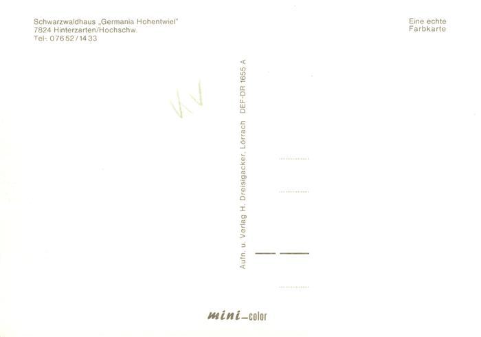 73918690 Hinterzarten Breisgau-Hochschwarzwald BW Schwarzwaldhaus Germania Hohentwiel postalisch nicht gelaufen Erhaltung siehe scans [FriedD77] Frie Katcode 11110008315052