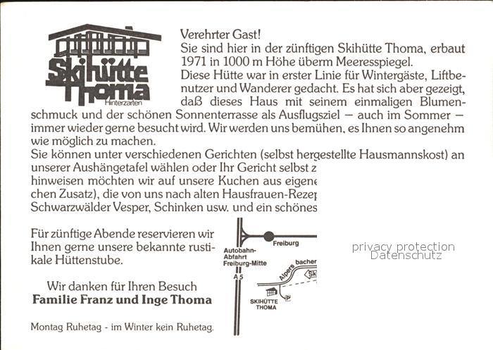 72397551 Hinterzarten Breisgau-Hochschwarzwald BW Skihuette Thoma postalisch nicht gelaufen Werbekarte (keine Postkarte) Erhaltung siehe scans KatCode: 11110008315052