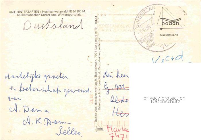 72771423 alte Postkarte Hinterzarten Breisgau-Hochschwarzwald BW Teilansicht postalisch gelaufen Erhaltung siehe scans [WerneD78] KatCode: 11110008315052