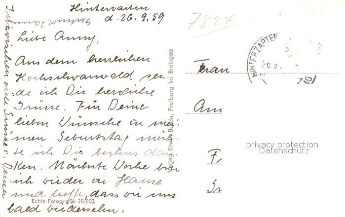 73603417 alte Postkarte Hinterzarten Fliegeraufnahme postalisch gelaufen Erhaltung siehe scans [KathaD81] KatCode: 11110008315052