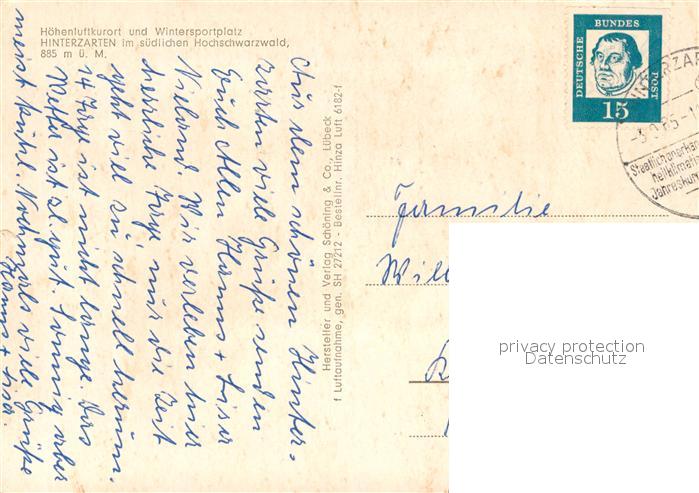 33602619 alte Postkarte Hinterzarten Fliegeraufnahme postalisch gelaufen Erhaltung siehe scans [LiesaD40] KatCode: 11110008315052
