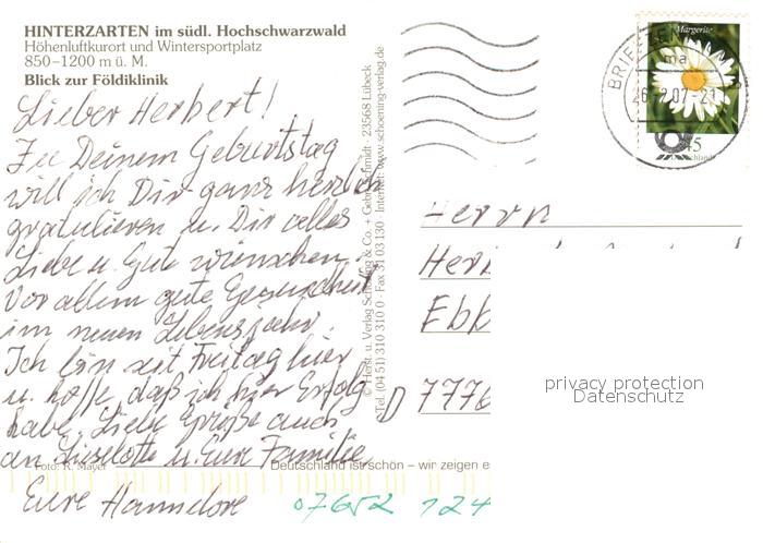 73321666 alte Postkarte Hinterzarten Foeldiklinik Fliegeraufnahme postalisch gelaufen Erhaltung siehe scans [WerneD78] KatCode: 11110008315052