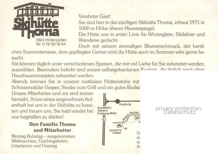 73359896 Hinterzarten Skihuette Thoma Wintersportplatz Schwarzwald postalisch nicht gelaufen Werbekarte (keine Postkarte) Erhaltung siehe scans [FriedD77] KatCode: 11110008315052