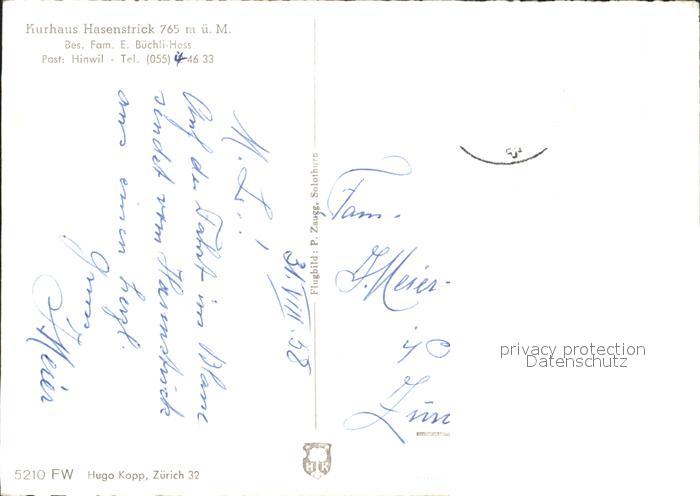 11658223 alte Postkarte Hinwil Fliegeraufnahme Kurhaus Hasenstrick am Bachtel postalisch gelaufen Erhaltung siehe scans KatCode: 11470260885296