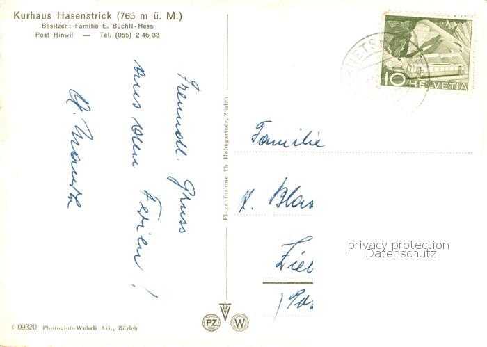 13800131 alte Postkarte Hinwil Kurhaus Hasenstrick postalisch gelaufen Fliegeraufnahme Erhaltung siehe scans [FriedD77] KatCode: 11470260885296