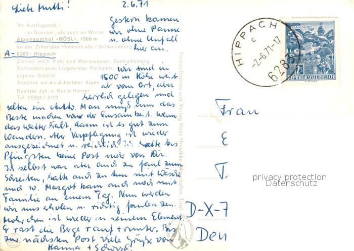 73631214 alte Postkarte Hippach Alpengasthof Moesl postalisch gelaufen Erhaltung siehe scans [WerneD78] KatCode: 11390335070916