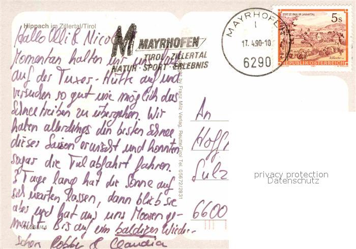 72759975 alte Postkarte Hippach Dorfpartien Gondelbahn Skilanglauf postalisch gelaufen Erhaltung siehe scans [WerneD78] KatCode: 11390335070916