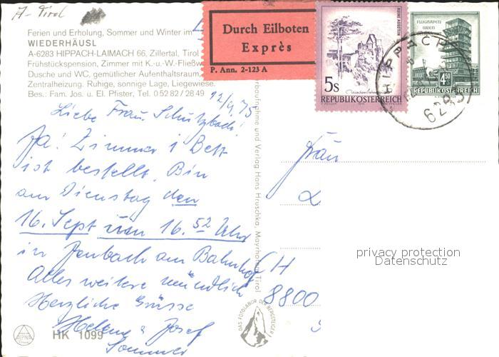 71812662 alte Postkarte Hippach Fruehstueckspension Wiederhaeusl postalisch gelaufen Erhaltung siehe scans KatCode: 11390335070916