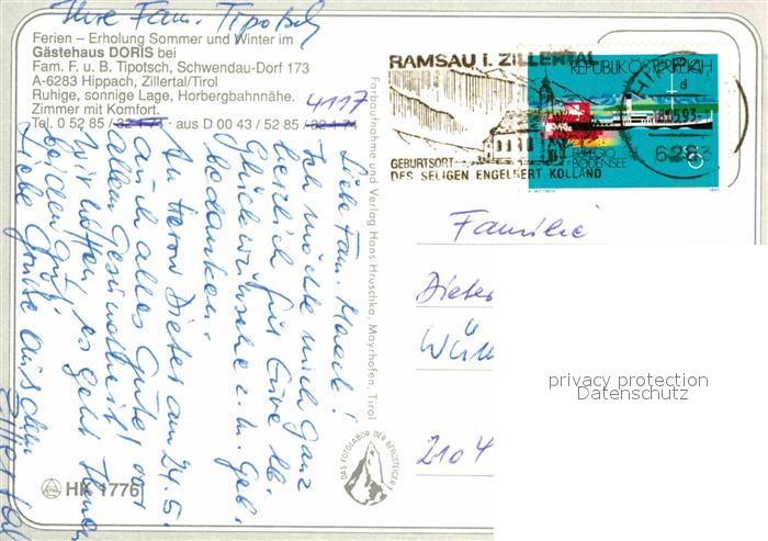 72706150 alte Postkarte Hippach Gaestehaus Doris postalisch gelaufen Erhaltung siehe scans [WerneD78] KatCode: 11390335070916