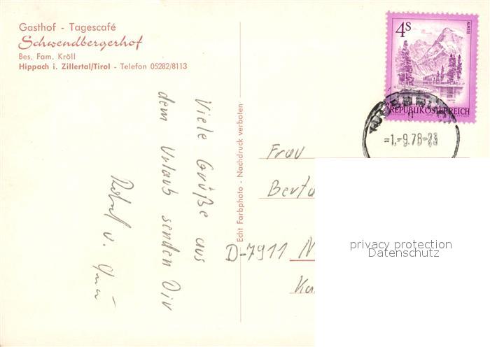 73049249 alte Postkarte Hippach Gasthaus Schwendbergerhof postalisch gelaufen Erhaltung siehe scans [KathaD81] KatCode: 11390335070916