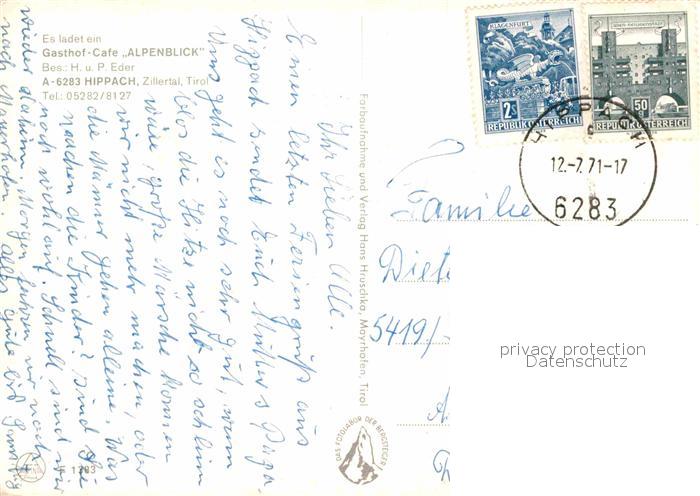 12871442 alte Postkarte Hippach Gasthof-Cafe Alpenblick postalisch gelaufen Erhaltung siehe scans [PaolaD17] KatCode: 11390335070916