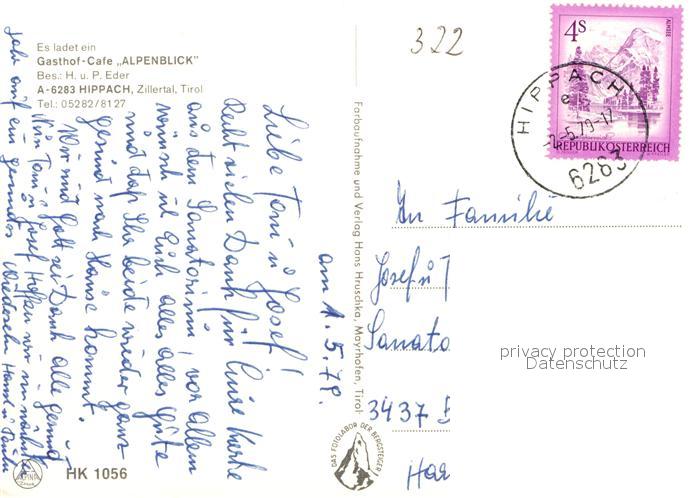 12934944 alte Postkarte Hippach Gasthof Cafe Alpenblick postalisch gelaufen Erhaltung siehe scans [AndreD76] KatCode: 11390335070916