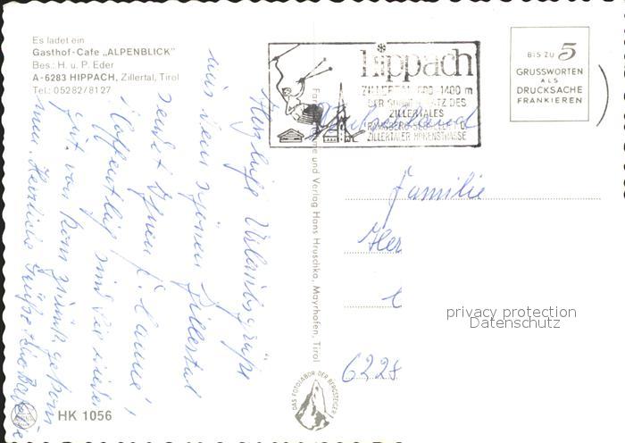 11931884 alte Postkarte Hippach Gasthof Pension Alpenblick postalisch gelaufen Erhaltung siehe scans KatCode: 11390335070916