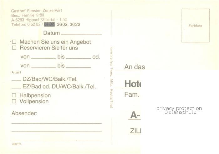 73598818 Hippach Gasthof-Pension Zenzerwirt postalisch nicht gelaufen Erhaltung siehe scans [PaolaD17] KatCode: 11390335070916