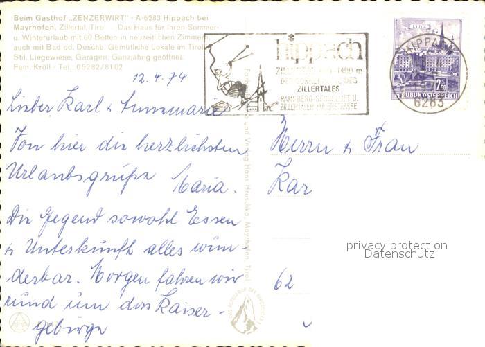 42923891 alte Postkarte Hippach Gasthof Zenzerwirt Speisesaal Panorama postalisch gelaufen Erhaltung siehe scans [WerneD48] KatCode: 11390335070916