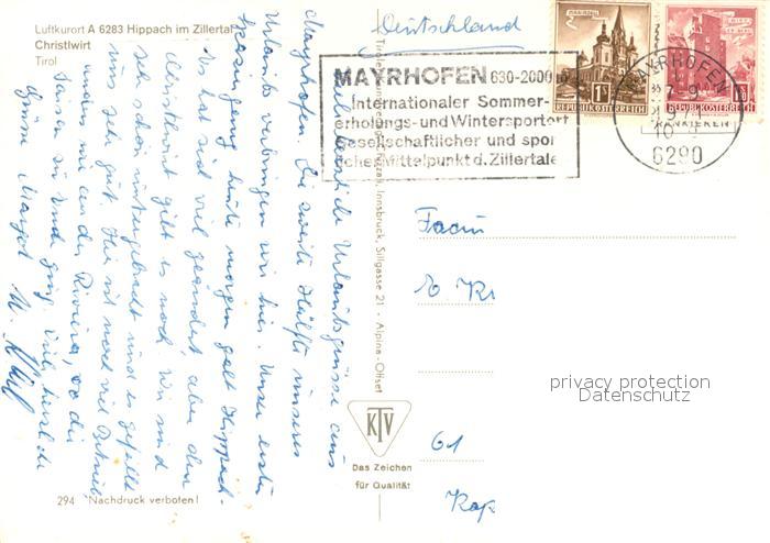 73175062 alte Postkarte Hippach Gaststaette Christlwirt Ortsmotiv mit Kirche postalisch gelaufen Erhaltung siehe scans [FriedD77] KatCode: 11390335070916