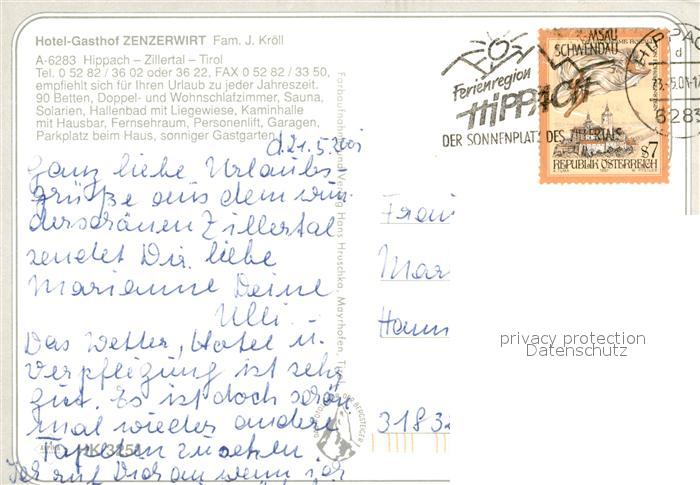 73112015 alte Postkarte Hippach Hotel Zenzerwirt postalisch gelaufen Erhaltung siehe scans [NatalD47] KatCode: 11390335070916