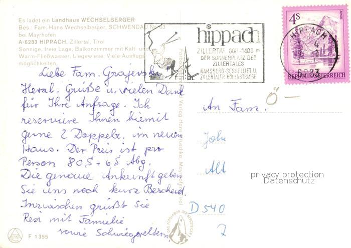 13326949 alte Postkarte Hippach Landhaus Wechselberger postalisch gelaufen Erhaltung siehe scans [KathaD81] KatCode: 11390335070916