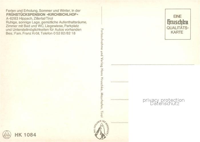73588136 Hippach Pension Kirchbichlhof Fremdenzimmer Landschaftspanorama Zillertaler Alpen postalisch nicht gelaufen Erhaltung siehe scans [FriedD77] KatCode: 11390335070916