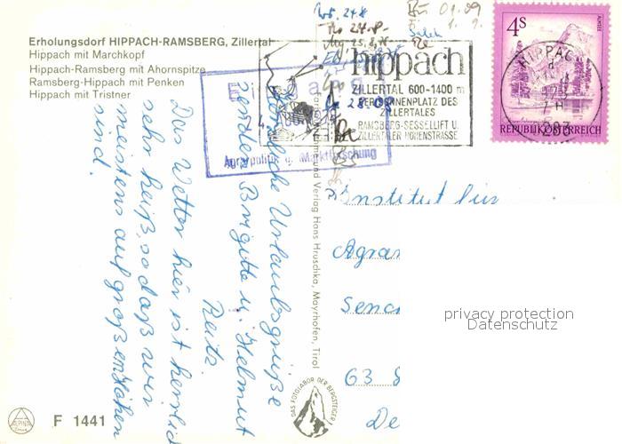 72772105 alte Postkarte Hippach Ramsberg Zillertal postalisch gelaufen Erhaltung siehe scans [LiesaD40] KatCode: 11390335070916