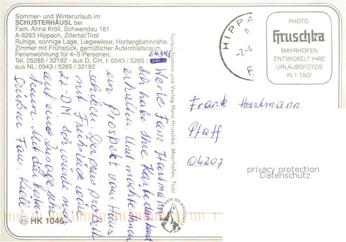 13009995 alte Postkarte Hippach Schusterhaeusl postalisch gelaufen Erhaltung siehe scans [NatalD47] KatCode: 11390335070916