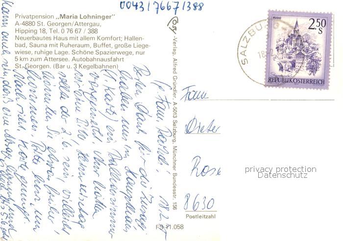 73518012 alte Postkarte Hipping St Georgen Pension Lohninger postalisch gelaufen Erhaltung siehe scans [KathaD81] KatCode: 11390315041746