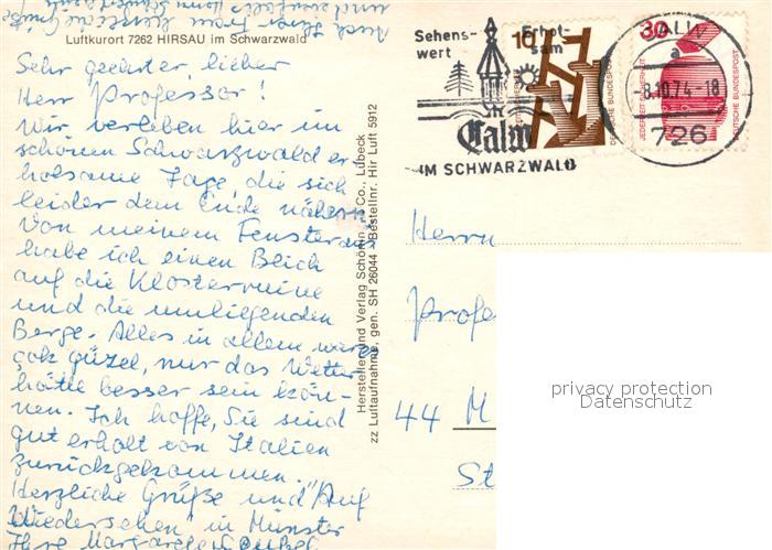 73070434 alte Postkarte Hirsau Fliegeraufnahme postalisch gelaufen Erhaltung siehe scans [WerneD78] KatCode: 11110008235085