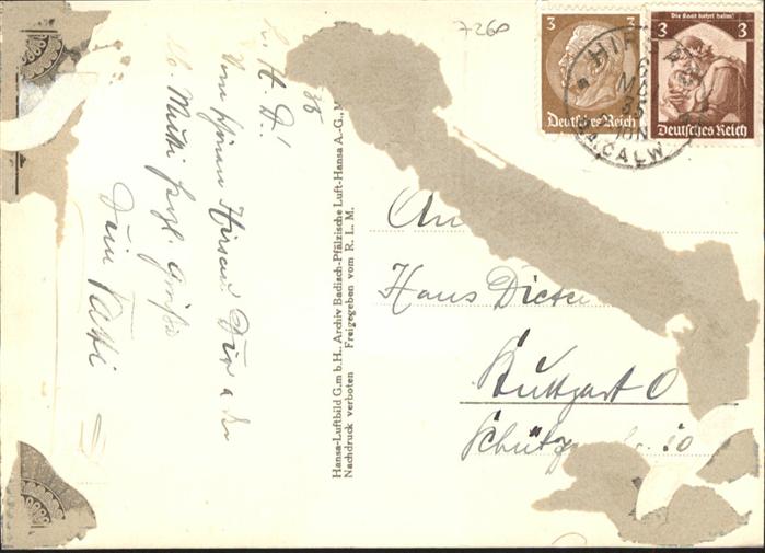 70958734 alte Postkarte Hirsau Fliegeraufnahme postalisch gelaufen KatCode: 11110008235085
