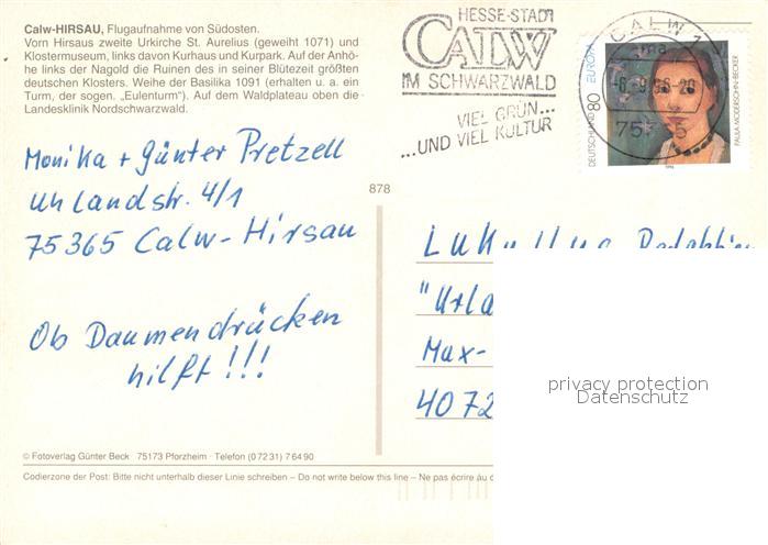 73686323 alte Postkarte Hirsau Fliegeraufnahme postalisch gelaufen Erhaltung siehe scans [FriedD77] KatCode: 11110008235085