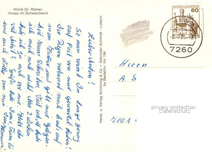72760587 alte Postkarte Hirsau Klinik Dr. Roemer postalisch gelaufen Erhaltung siehe scans [LiesaD40] KatCode: 11110008235085