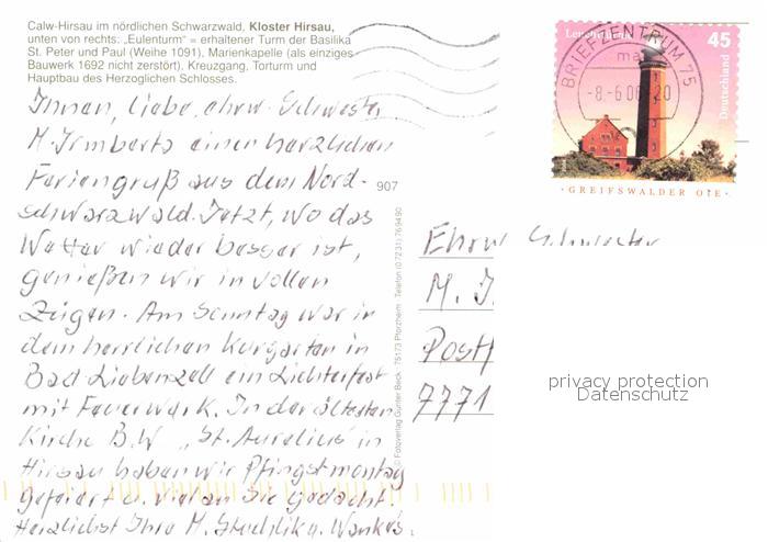 72694588 alte Postkarte Hirsau Kloster Eulenturm Basilika Marienkapelle Kreuzgang Torturm Schloss postalisch gelaufen Erhaltung siehe scans [FriedD77] KatCode: 11110008235085