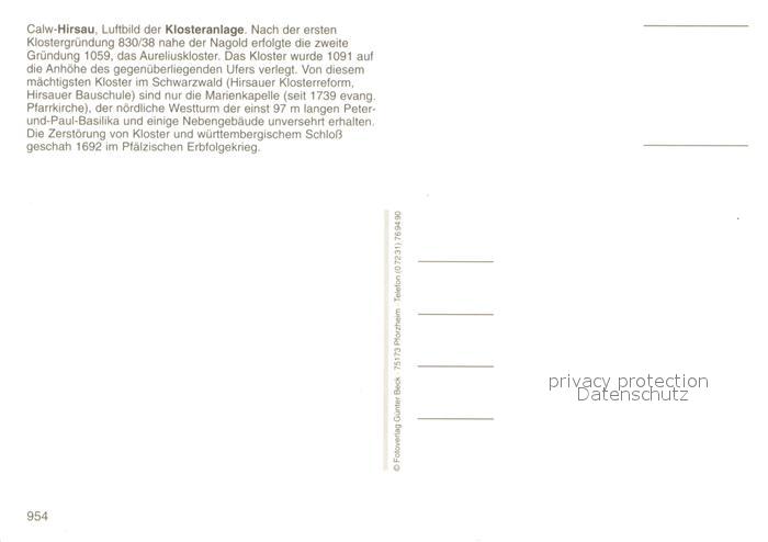 73721711 Hirsau Klosteranlage Fliegeraufnahme postalisch nicht gelaufen Erhaltung siehe scans [WerneD78] KatCode: 11110008235085