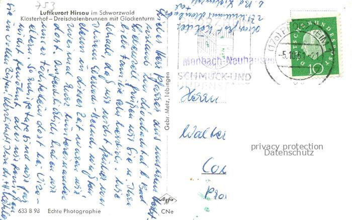 74076314 alte Postkarte Hirsau Klosterhof mit Dreischalenbrunnen und Glockenturm postalisch gelaufen Erhaltung siehe scans [WerneD78] KatCode: 11110008235085