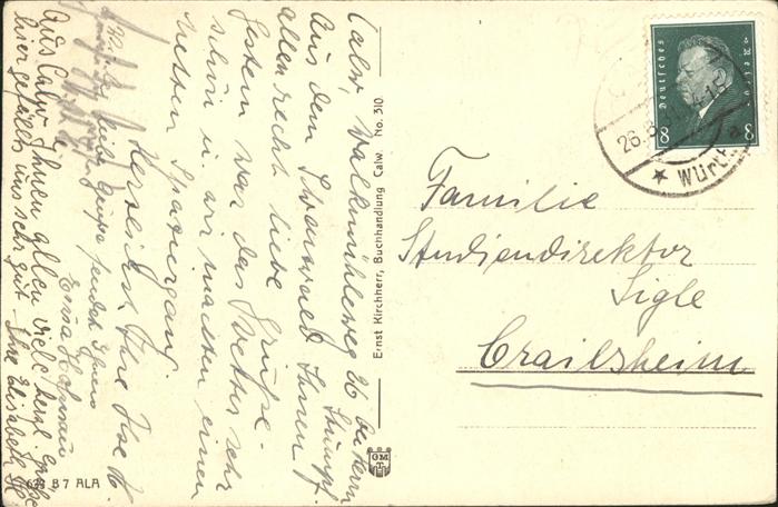 71339860 alte Postkarte Hirsau Kreuzgang im Kloster postalisch gelaufen gute Erhaltung KatCode: 11110008235085
