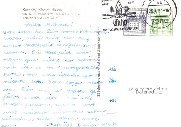 72920389 alte Postkarte Hirsau Kurhotel Kloster Hirsau postalisch gelaufen Erhaltung siehe scans [LiesaD40] KatCode: 11110008235085