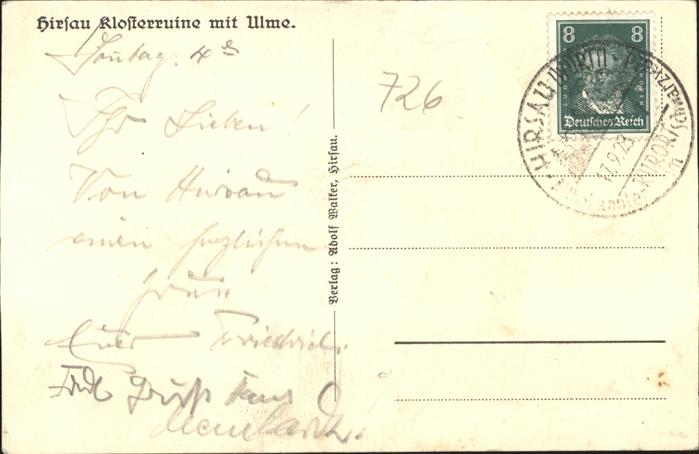 71339903 alte Postkarte Hirsau Schlossruine mit Ulme postalisch gelaufen gute Erhaltung KatCode: 11110008235085