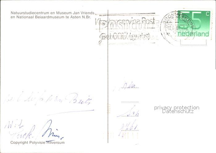 alte Postkarte Hirsch Museum Jan Vriends Museum Asten Kirchenglocken postalisch gelaufen Erhaltung siehe scans