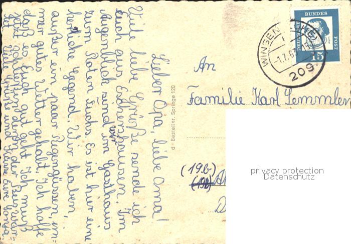 alte Postkarte Hirsch Wisentgehege Springe Deister Rehbock Keiler Mufflon Damschaufler postalisch gelaufen Erhaltung siehe scans