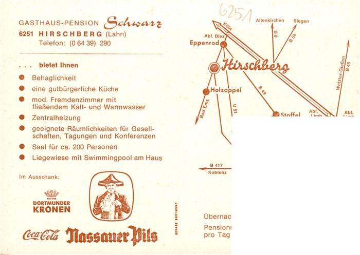 73936204 Hirschberg Dillkreis Schloss Gasthaus Pension Schwarz Gastraum Liegewiese postalisch nicht gelaufen Werbekarte (keine Postkarte) Erhaltung siehe scans [FriedD77] KatCode: 11110006532012
