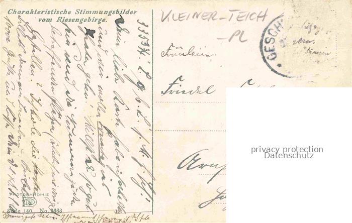 74031342 old postcard Hirschberg JELENIA GORA Riesengebirge Schlesien PL Panorama Kleiner Teich Serie Charakteristische Stimmungsbilder vom Riesengebirge postalisch gelaufen Erhaltung siehe scans [FriedD77] KatCode: 11410