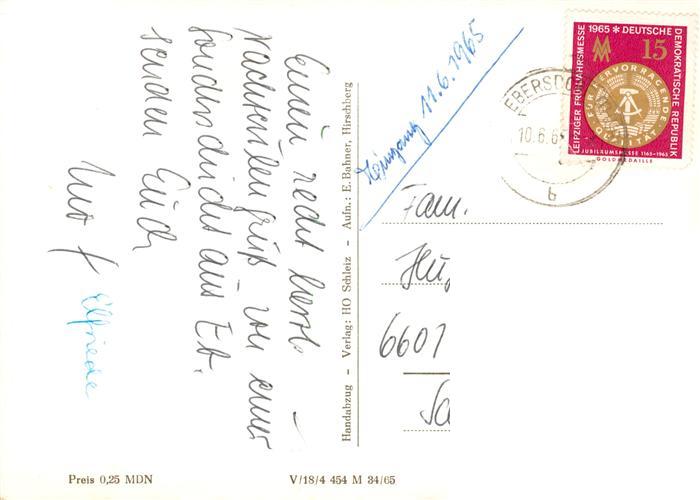 73871994 alte Postkarte Hirschberg Saale Schlossberg Pestalozzischule Plauensche Strasse AWG Neubau postalisch gelaufen Erhaltung siehe scans [WerneD78] KatCode: 11110016075046