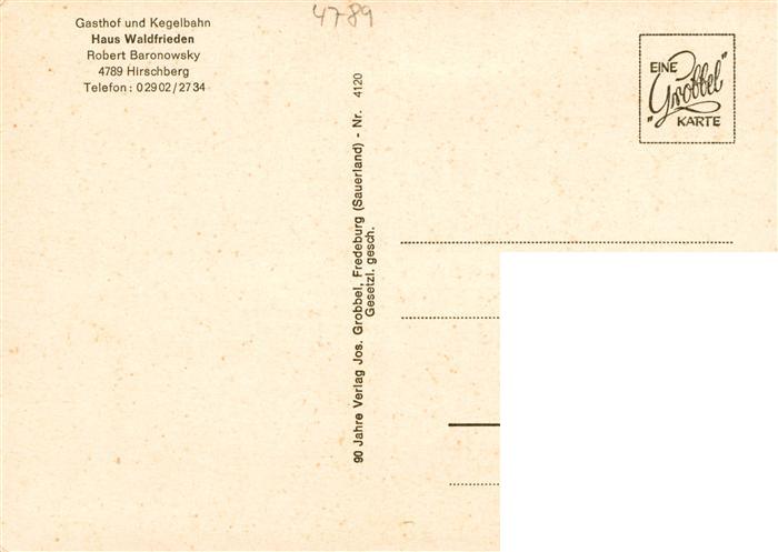 73896138 Hirschberg Sauerland Warstein Gasthof und Kegelbahn Haus Waldfrieden Gastraum Freibad postalisch nicht gelaufen Erhaltung siehe scans [FriedD77] Frie Katcode 11110005974044